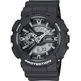 Black resin case with a black resin bracelet. Fixed black resin bezel. Analog / digital dial with steel hands and index hour markers. Digital: date, day of the week, am/pm. Quartz movement. Scratch resistant mineral crystal. Solid case back. Case diameter: 51.2 mm. Case thickness: 16.9 mm. Tang clasp. Water resistant at 200 meters / 660 feet. Functions: digital analog. AdditionalInfo: world tome (29 cities), alarm, elapsed time, lap time, split time. Casio G Shock Analog Digital Black Resin Strap Mens Watch GA110C-1A. Read more